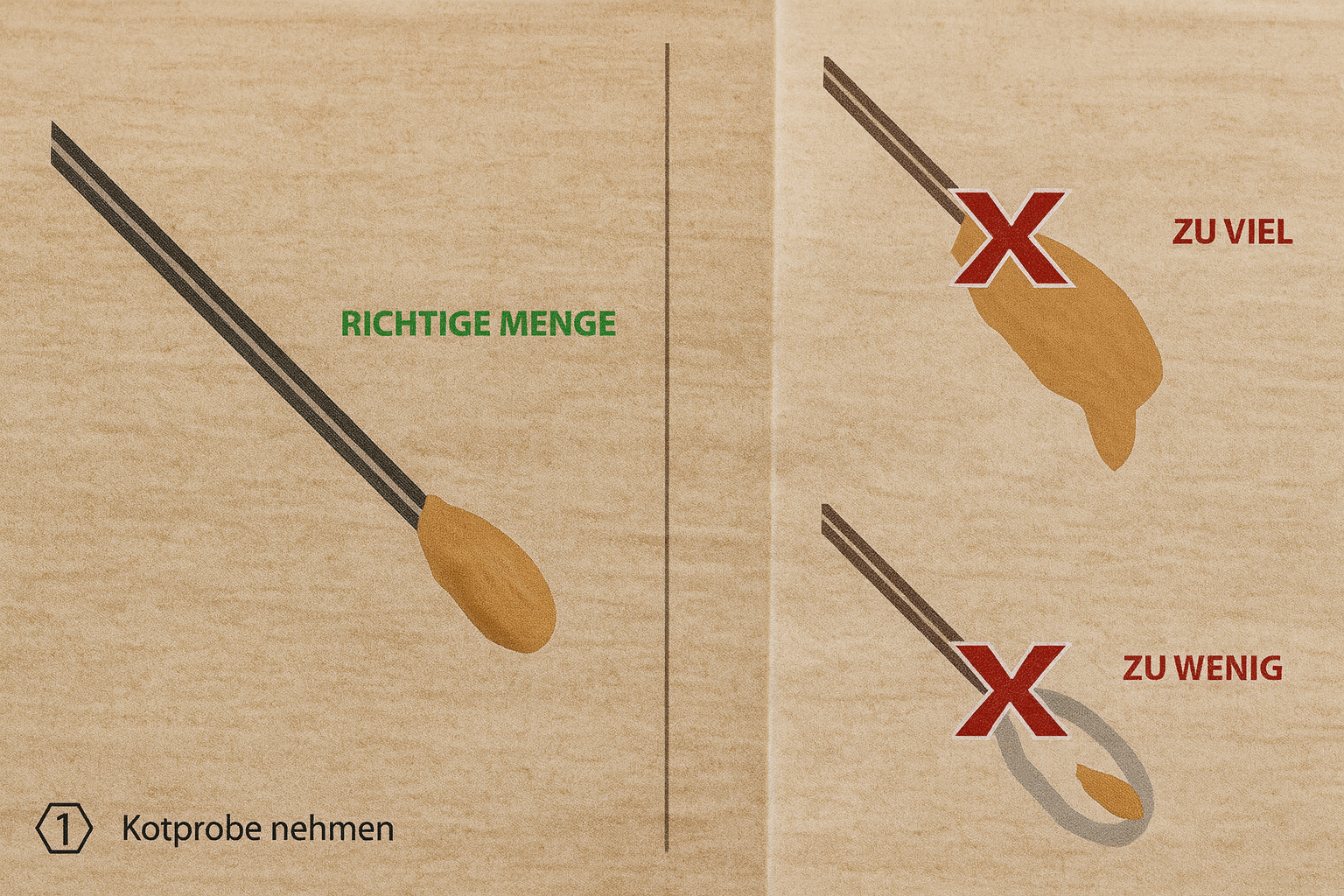 Mit dem mitgelieferten Wattestäbchen etwas Kot aufnehmen.