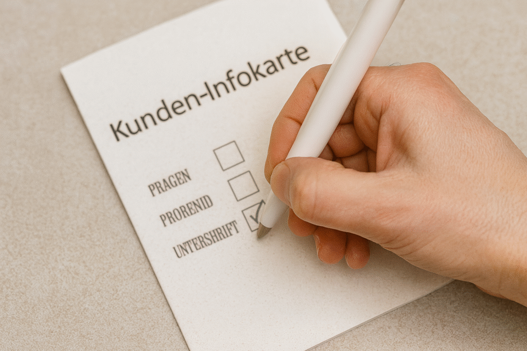 Fülle die Kundeninfokarte und das Adressfeld des Rückumschlags aus